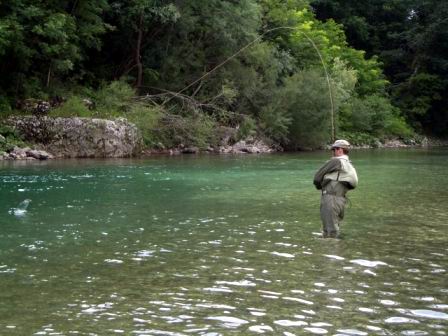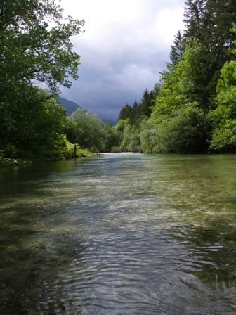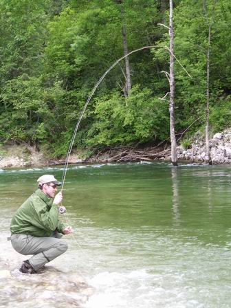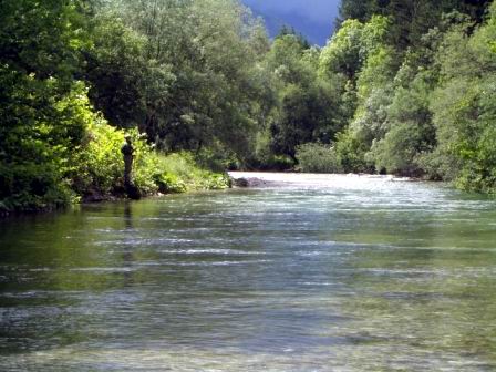 Wir fingen an unserem ersten Angeltag an der Sava Bohinjka viele und auch einige besonders schöne Fische. Aufgrund des starken Angeldrucks beschlossen wir beim Abendessen, den nächsten Tag mit einem Ausflug an die ca. 55 km entfernte Soca zu verbringen. |