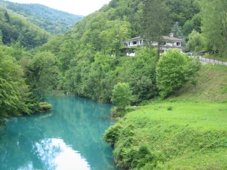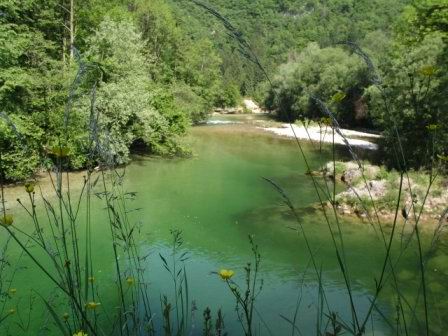 | Da war sie nun, die Soca, ein Fluss wie in einem Anglertraum. Das smaragdfarbene Wasser kämpft sich durch das Tal und ändert permanent seinen Charakter. Mal dreißig Meter breit und im nächsten Moment auch schon auf fünf Meter komprimiert. Sie peitscht sich durch eine in Jahrtausenden eingewaschene tiefe Spalte, donnert über und zwischen riesigen Gesteinsbrocken hindurch, um im nächsten Augenblick wieder ihren Frieden zu finden, nun rauscht sie wieder mal tiefer, mal breiter vor sich hin. Wahnsinn, ein echtes Naturschauspiel, in einer Kulisse, die ich nie wieder vergessen werde. Wer in dieser Region einmal sein sollte, dem empfehle ich einen Abstecher ins Soca-Tal. |
