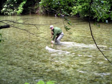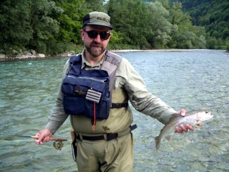Unser Angeltag an der Idijca gehörte zu den so genannten Sternstunden in einem Anglerleben! Ein schöner Fluss mit einem guten Fischbestand an Regenbognern. Rudi fing alleine an einer Stelle 15 Forellen in Serie, sie waren ohne Ausnahme zwischen 40 und 50 cm groß. Ich fing an diesem tollen Tag den größten Fisch unserer Tour, eine Regenbogenforelle von 67 cm. Wir befischten die Strecke von Tolmin, im Sektor Most na Soci, man findet auf 16,2 Kilometern alles was das Herz höher schlagen lässt. |