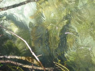 am Rande des Flusses in einem winzigen Kehrwasser unter ein wenig Schwemmgut.